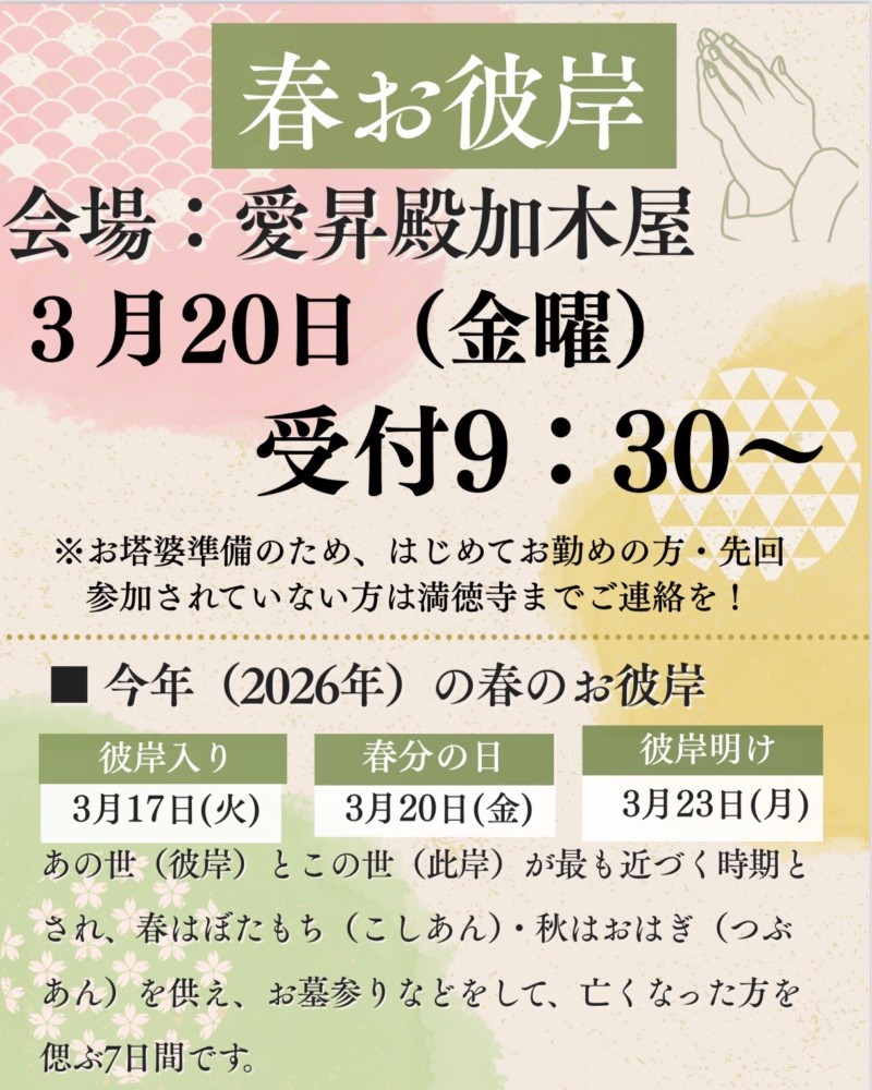 いつもお参りいただく皆様へ、今後の予定とお参りの際の注意をお知らせします。